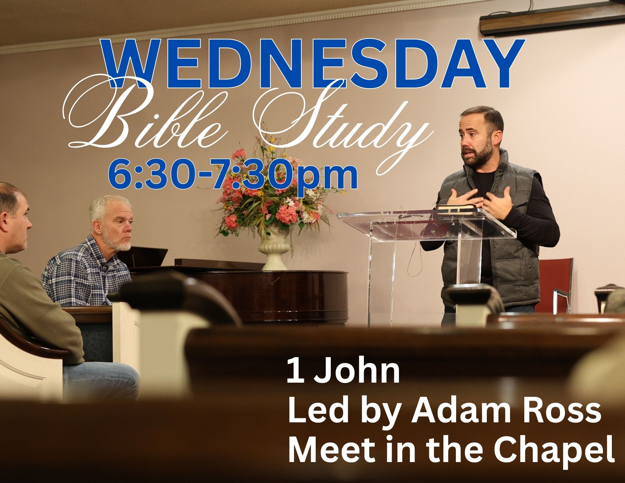 Join us Wednesday nights for Bible Study led by Clark Colbert—a time of deep teaching, honest conversation, and practical insight into God’s Word. Come ready to grow in faith and community. Join us Wednesdays from 6-7pm in the Chapel.